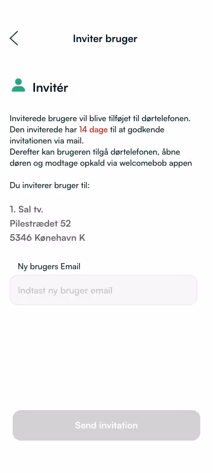 Ange e-postadressen till den person du vill bjuda in att använda dörrtelefonen.